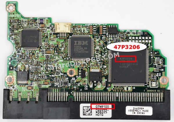 메인 컨트롤 칩의 번호는47P3206. “화이트 라벨”의 번호는07N9100. “PCB 번호”는F 36H6419 01, B 36H6419 01.히타치 3.5인치 하드 드라이브의 경우 교체 PCB에 원래 PCB와 동일한 수의 “메인 컨트롤 칩”이 있는지 확인해야 합니다! 히타치 2.5인치 하드 드라이브의 경우 교체 PCB에 원래 PCB와 동일한 수의 “화이트 라벨”이 있는지 확인해야 합니다!히타치 하드디스크 PCB기판 교체