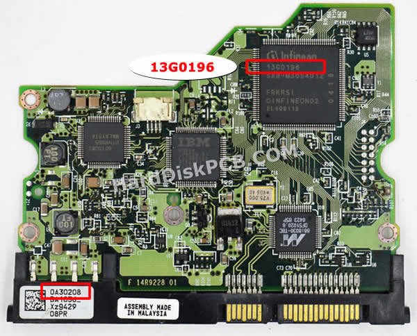 메인 컨트롤 칩의 번호는13G0196. “화이트 라벨”의 번호는0A30208. “PCB 번호”는F 14R9228 01, B 14R9228 01.히타치 3.5인치 하드 드라이브의 경우 교체 PCB에 원래 PCB와 동일한 수의 “메인 컨트롤 칩”이 있는지 확인해야 합니다! 히타치 2.5인치 하드 드라이브의 경우 교체 PCB에 원래 PCB와 동일한 수의 “화이트 라벨”이 있는지 확인해야 합니다!히타치 하드디스크 PCB기판 교체