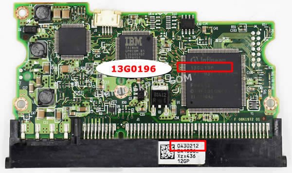 메인 컨트롤 칩의 번호는13G0196. “화이트 라벨”의 번호는0A30212. “PCB 번호”는F 08K1972 01, B 08K1972 01.히타치 3.5인치 하드 드라이브의 경우 교체 PCB에 원래 PCB와 동일한 수의 “메인 컨트롤 칩”이 있는지 확인해야 합니다! 히타치 2.5인치 하드 드라이브의 경우 교체 PCB에 원래 PCB와 동일한 수의 “화이트 라벨”이 있는지 확인해야 합니다!히타치 하드디스크 PCB기판 교체