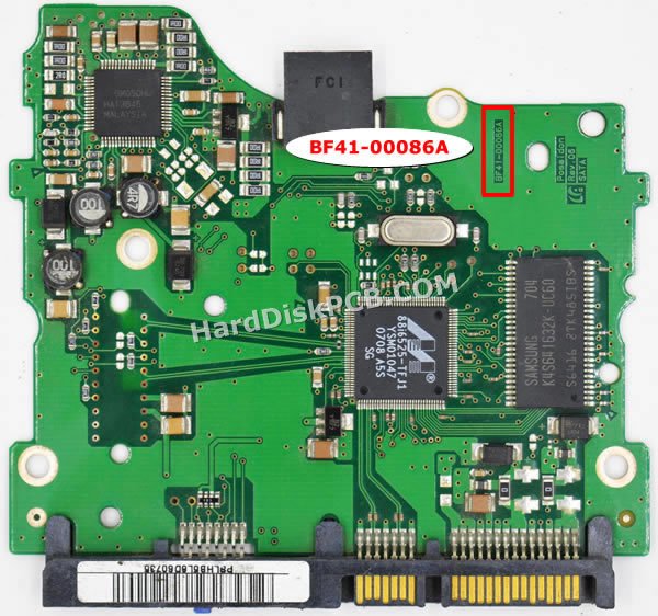 “PCB 번호”는 BF41-00086A. 삼성 하드 드라이브의 “PCB 번호”는 “BF41-***”로 시작하며 번호는 보드에 인쇄되어 있습니다. 보드를 교체하려면 기증자 보드에 원래 보드와 동일한 “PCB 번호”가 있어야 합니다.삼성 하드디스크 PCB기판 교체