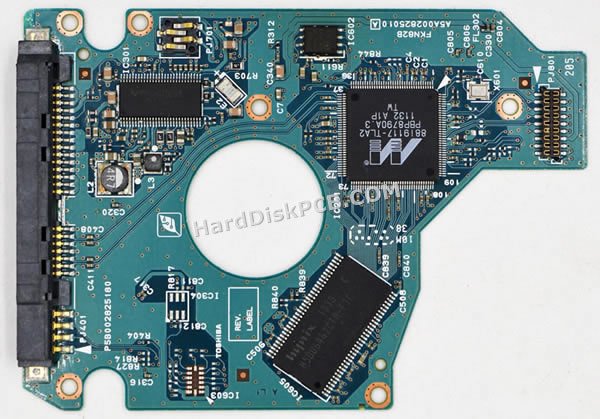 “PCB 번호”는 G002825A. 도시바 하드 드라이브의 “PCB 번호”는 “G00***”으로 시작하며 번호는 보드에 인쇄되어 있습니다. 보드를 교체하려면 기증자 보드에 원래 보드와 동일한 “PCB 번호”가 있어야 합니다.도시바 하드디스크 PCB기판 교체