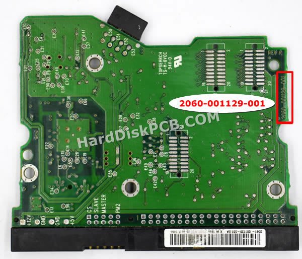 “PCB 번호”는 2060-001129-001. 웨스턴디지털 하드 드라이브의 “PCB 번호”는 “2060-***”으로 시작하며 번호는 보드에 인쇄되어 있습니다. 보드를 교체하려면 기증자 보드에 원래 보드와 동일한 “PCB 번호”가 있어야 합니다.웨스턴디지털 하드디스크 PCB기판 교체