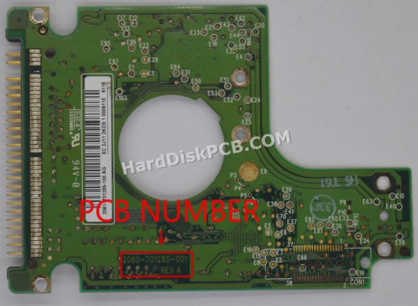 “PCB 번호”는 2060-701285-001. 웨스턴디지털 하드 드라이브의 “PCB 번호”는 “2060-***”으로 시작하며 번호는 보드에 인쇄되어 있습니다. 보드를 교체하려면 기증자 보드에 원래 보드와 동일한 “PCB 번호”가 있어야 합니다.웨스턴디지털 하드디스크 PCB기판 교체