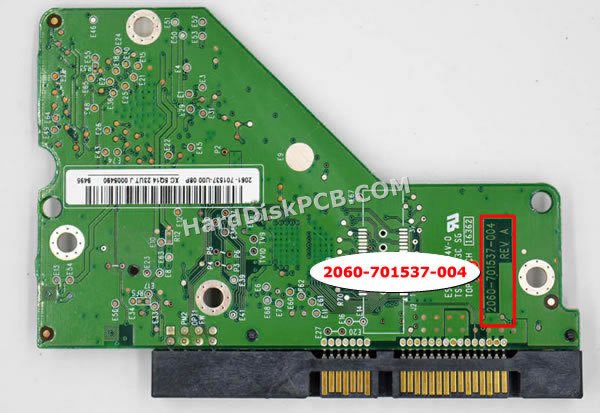 “PCB 번호”는 2060-701537-004. 웨스턴디지털 하드 드라이브의 “PCB 번호”는 “2060-***”으로 시작하며 번호는 보드에 인쇄되어 있습니다. 보드를 교체하려면 기증자 보드에 원래 보드와 동일한 “PCB 번호”가 있어야 합니다.웨스턴디지털 하드디스크 PCB기판 교체
