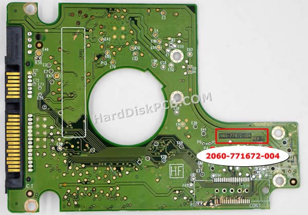 “PCB 번호”는 2060-771672-004. 웨스턴디지털 하드 드라이브의 “PCB 번호”는 “2060-***”으로 시작하며 번호는 보드에 인쇄되어 있습니다. 보드를 교체하려면 기증자 보드에 원래 보드와 동일한 “PCB 번호”가 있어야 합니다.웨스턴디지털 하드디스크 PCB기판 교체