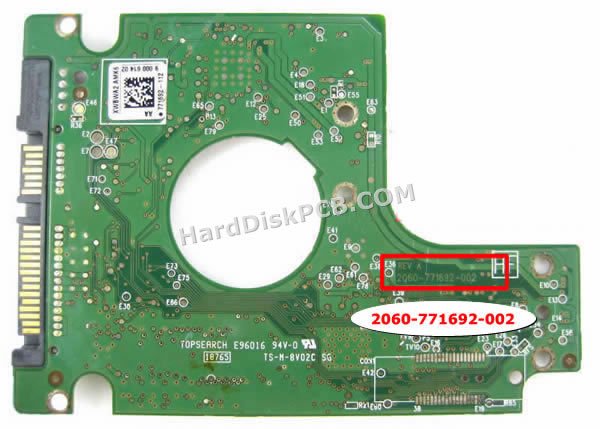 “PCB 번호”는 2060-771692-002. 웨스턴디지털 하드 드라이브의 “PCB 번호”는 “2060-***”으로 시작하며 번호는 보드에 인쇄되어 있습니다. 보드를 교체하려면 기증자 보드에 원래 보드와 동일한 “PCB 번호”가 있어야 합니다.웨스턴디지털 하드디스크 PCB기판 교체