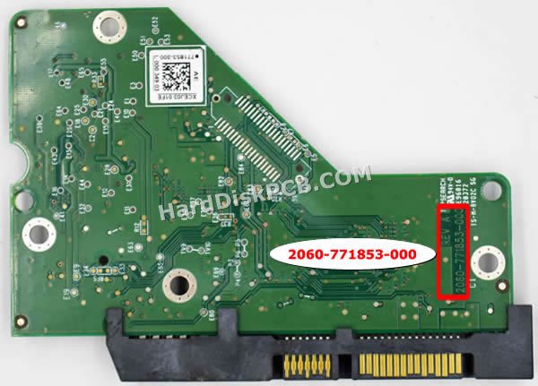 “PCB 번호”는 2060-771853-000. 웨스턴디지털 하드 드라이브의 “PCB 번호”는 “2060-***”으로 시작하며 번호는 보드에 인쇄되어 있습니다. 보드를 교체하려면 기증자 보드에 원래 보드와 동일한 “PCB 번호”가 있어야 합니다.웨스턴디지털 하드디스크 PCB기판 교체