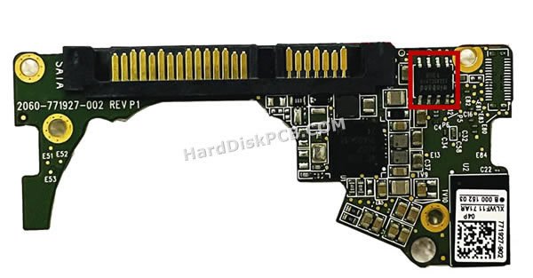 “PCB 번호”는 2060-771927-002. 웨스턴디지털 하드 드라이브의 “PCB 번호”는 “2060-***”으로 시작하며 번호는 보드에 인쇄되어 있습니다. 보드를 교체하려면 기증자 보드에 원래 보드와 동일한 “PCB 번호”가 있어야 합니다.웨스턴디지털 하드디스크 PCB기판 교체