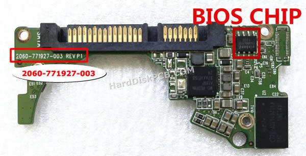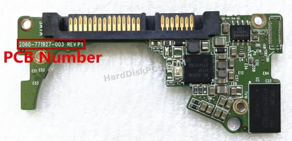 “PCB 번호”는 2060-771927-003. 웨스턴디지털 하드 드라이브의 “PCB 번호”는 “2060-***”으로 시작하며 번호는 보드에 인쇄되어 있습니다. 보드를 교체하려면 기증자 보드에 원래 보드와 동일한 “PCB 번호”가 있어야 합니다.웨스턴디지털 하드디스크 PCB기판 교체